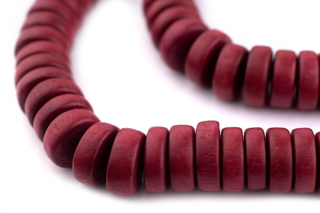 Cherry Red Disk Natural Wood Beads (5x12mm)