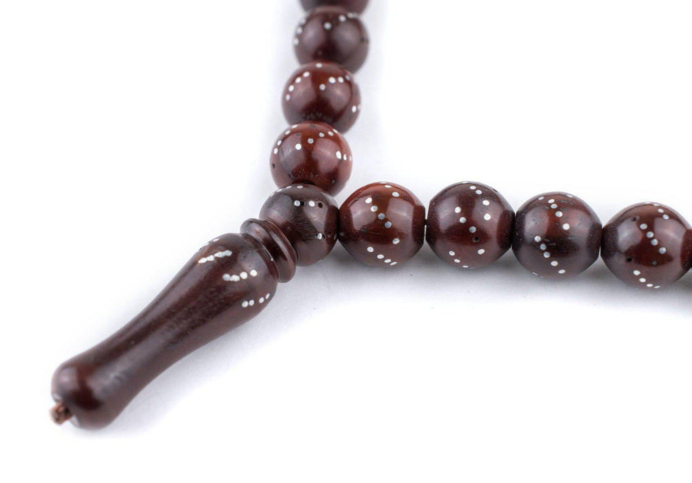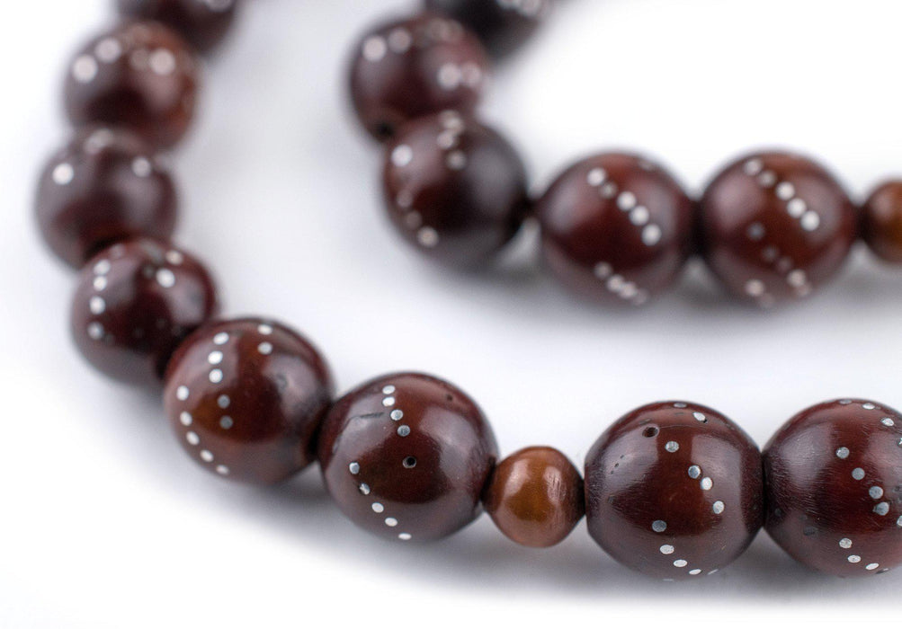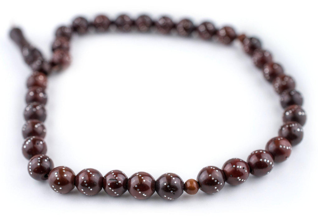 Cherry Red Silver-Inlaid Round Arabian Prayer Beads (9mm)