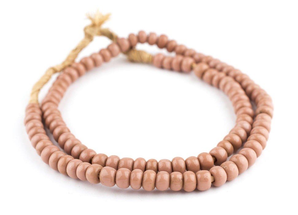 Strand of Cheyenne Pink glass beads. Each bead measures approximately 7-8mm in diameter by 5-6mm wide. Some variation in individual beads as shown pictured.