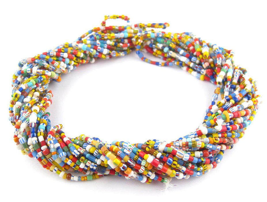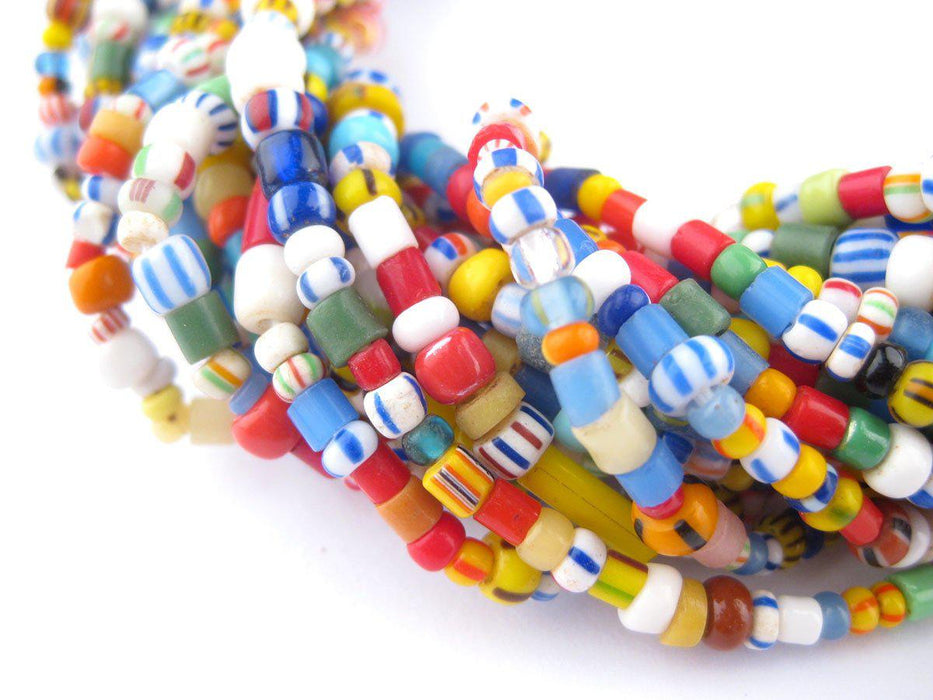 Bright, beautifully colored glass trade beads with an occasional plastic spacer bead. Originally made in southern Spain, Venice, and Czechoslovakia especially for the African trade. Tribes would keep these beads as heirlooms for generations. They are now being accumulated in Nigeria and Ghana by the bead, and restrung for your beading projects. Strand lengths may vary from 35 inches to 38 inches. Multiple strands are shown in the photo however strands are sold INDIVIDUALLY. Bulk pricing is available. Buy more strands and pay LESS per strand. Buy more save more! YOU WILL RECEIVE 5 STRANDS WITH EACH PURCHASE. PHOTO SHOWS ONE STRAND ONLY.