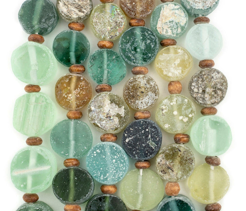 Circular Ancient Roman Glass Beads (6-14mm, Thick Cut)