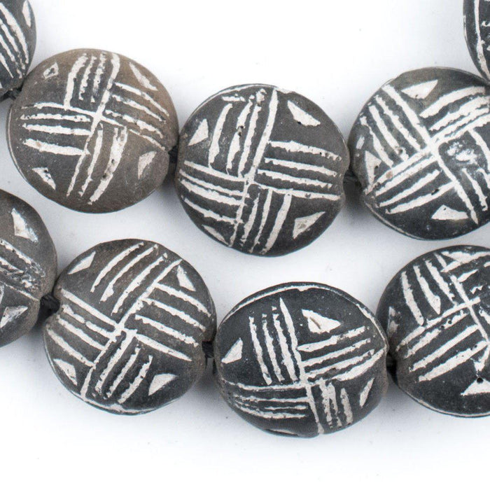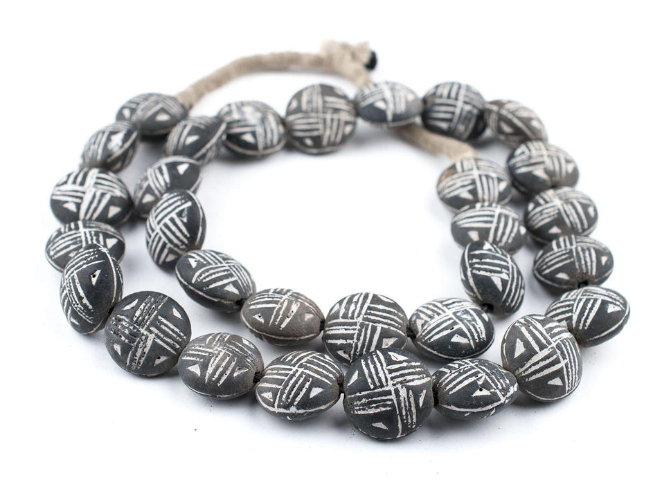 Circular Black Mali Clay Beads (10x20mm)