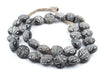 Take a look at this great strand of black colored terracotta beads from Mali. Beautifully hand crafted, each bead may show slight variation in size and pattern and measures approximately 10 x 20mm, with hole size of 2mm. Each strand measures approximately 27" in length, and contains approximately 30 beads.