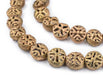 We are amazed by these Mini Brass Filigree Circle Cross Patterned beads. Coming to us all the way from West Africa these artisan beads are truly unique. Each bead is individually handcrafted using the 'Lost Wax' technique. These interestingly patterned beads make for a perfect charm bracelet and even look great when worn as is as a necklace. Each bead strand measures in at about 24" in length. Each bead is approximately 8mm wide by 12mm diameter and roughly 3mm stringing hole. Limited supply. Each strand is unique and may vary slightly from picture. So go ahead and treat yourself, grab a Brass Filigree bead strand today!