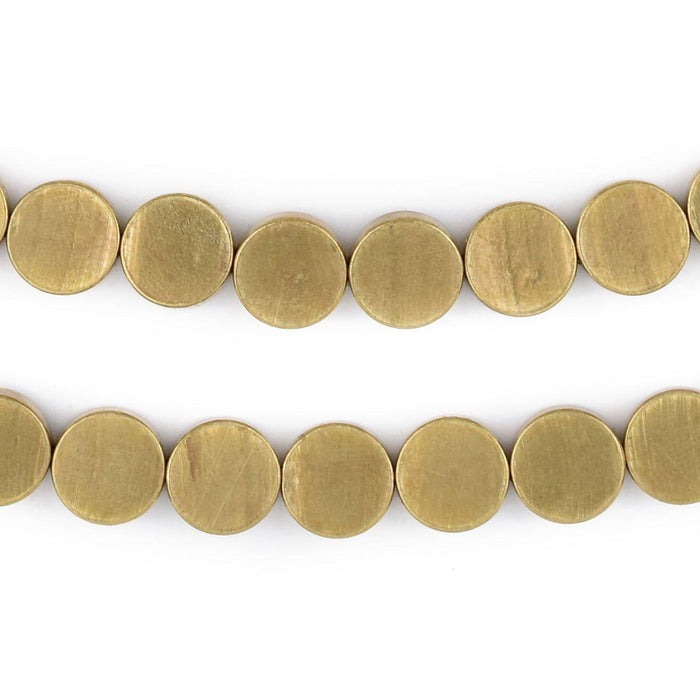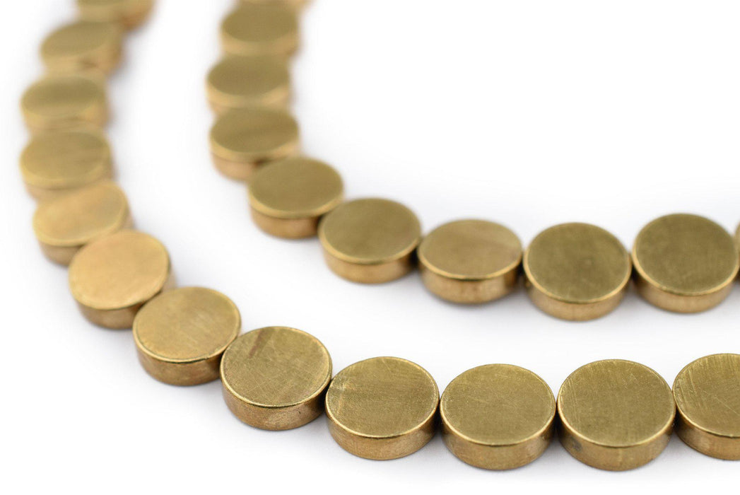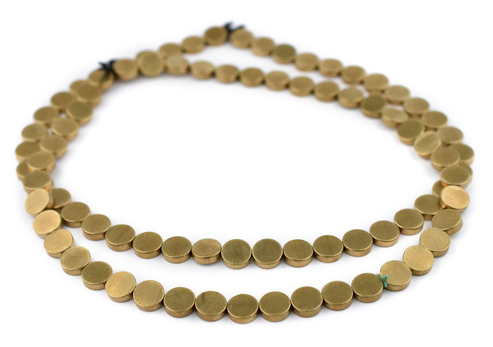 These circular brass beads have been fashioned in a design resembling small tablets. Drilled in the transverse direction, they will lie flat when strung on thread. Great for bracelets, necklaces, or general purpose spacers, each bead measures approximately 3 x 10mm with a 1mm hole size. You will receive one 16" strand with each purchase.