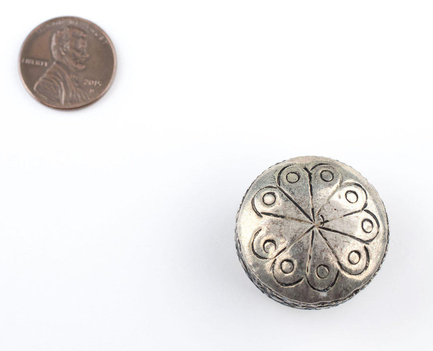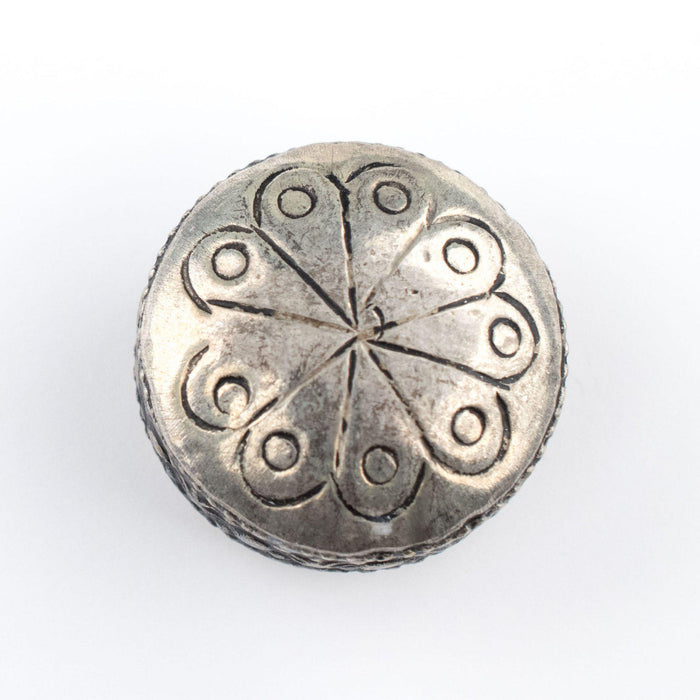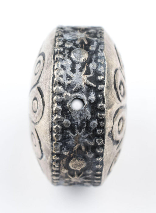 This artisanal Moroccan bead was handcrafted by Berber artisans west of the Atlas mountains. Pay attention to the elegant pattern on the bead's outer edge. Each bead measures approximately 16 x 28mm, with a hole size of 2mm. Beads are sold individually.