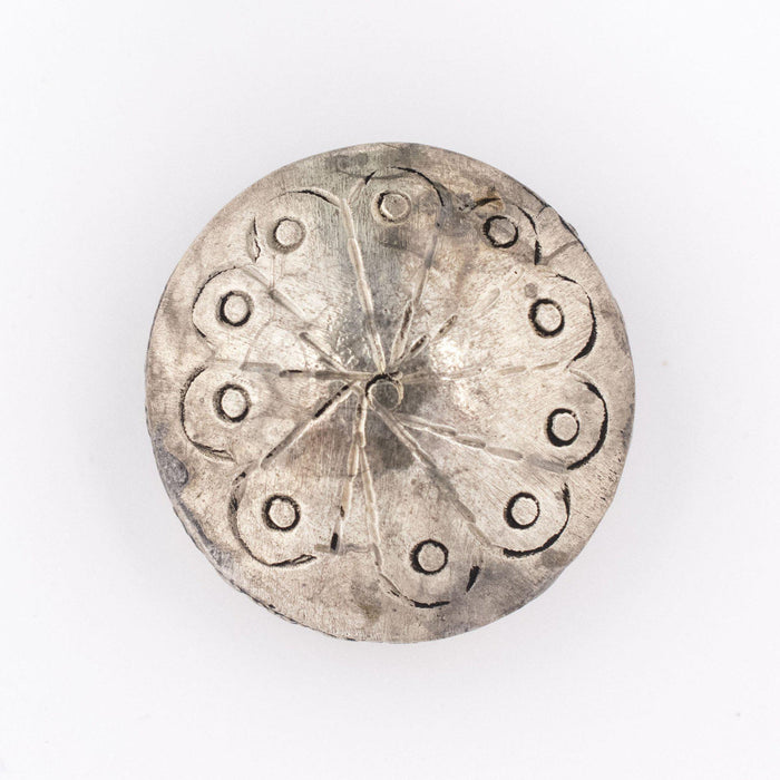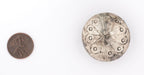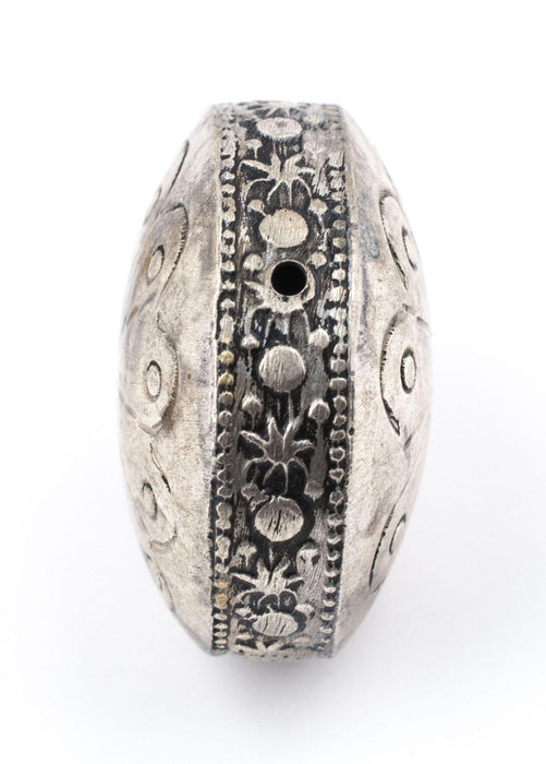 This artisanal Moroccan bead was handcrafted by Berber artisans west of the Atlas mountains. Pay attention to the elegant pattern on the bead's outer edge. Each bead measures approximately 19-22 x 29-34mm, with a hole size of 2mm. Beads are sold individually.