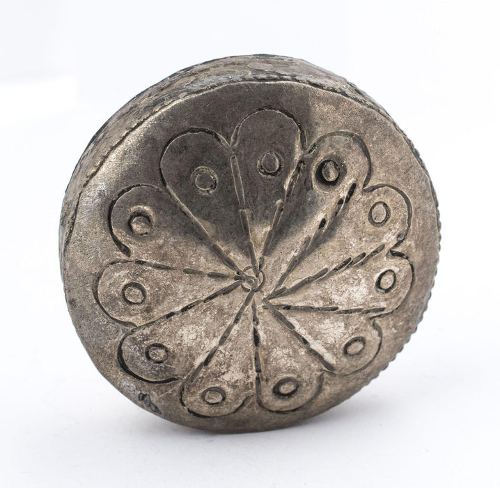 This artisanal Moroccan bead was handcrafted by Berber artisans west of the Atlas mountains. Pay attention to the elegant pattern on the bead's outer edge. Each bead measures approximately 20 x 41mm, with a hole size of 1mm. Beads are sold individually.