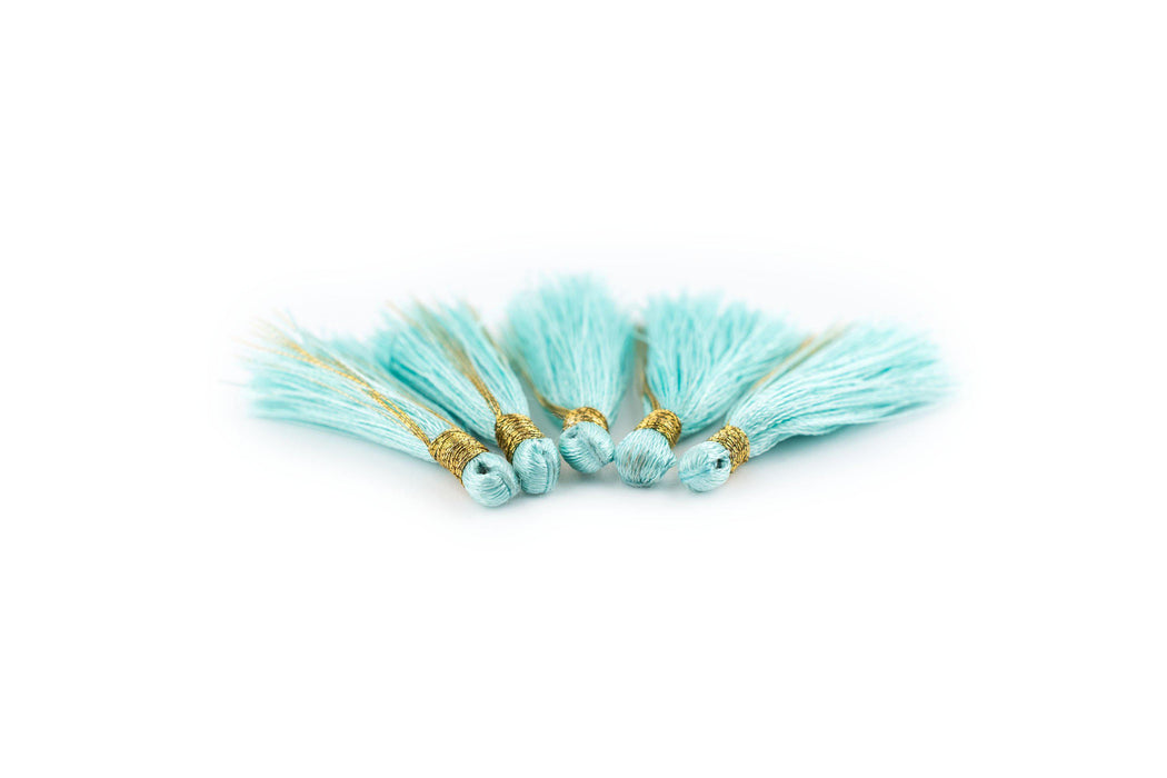 Clear Aqua 3cm Silk Tassels (5 Pack)