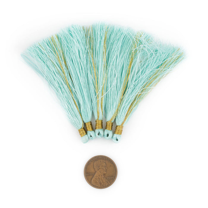 Clear Aqua 6cm Silk Tassels (5 Pack)