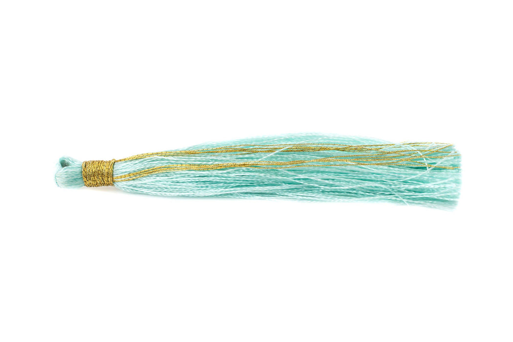Look no further! These genuine silk tassels have been individually handmade by an expert of the craft. They are crafted from authentic Indian silk which is highly refined and world renown. Specially made for The Bead Chest, each high quality tassel is wrapped with a gold thread. Available in 20+ fun colors and 4 different sizes, you’ll find in our collection a tassel for almost every need. Each purchase of these green tassels will ship as a pack of five pieces. Individual tassels measure approximately 6 centimeters (2.4 inches) in length. May be used in jewelry designs, home decor, and art projects galore. Mix and match your favorite styles today!
