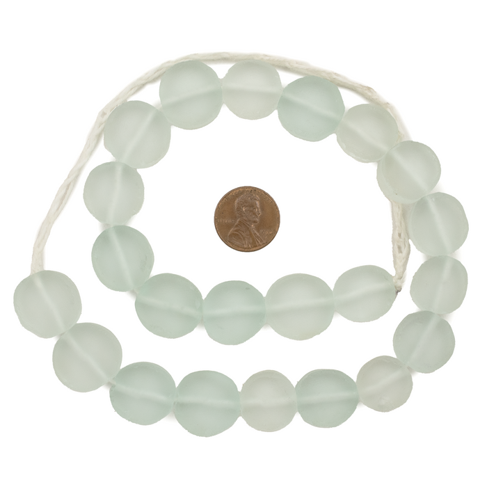 Clear Aqua Flat Circular Java Recycled Glass Beads (18mm)