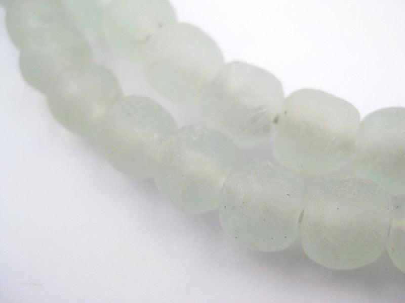Take a look at this beautiful strand of blue recycled glass beads. You will receive a 25" strand with approximately 50 beads. Recycled glass beads are a type of indigenously produced African bead from Ghana West Africa. These beautiful recycled beads are made using an old method that has been used for centuries. The glass itself is derived from a variety of recycled sources including old beverage and medicine bottles. The procedure for making the beads consists of a number of steps whereby powdered glass is poured into molds of clay and baked in a specialized oven. These beads are produced primarily by the Krobo tribe and are environmentally friendly.