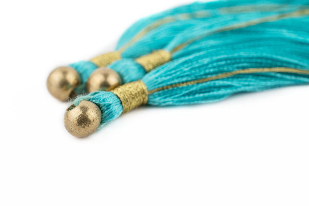 Look no further! These genuine silk tassels have been individually handmade by an expert of the craft. They are crafted from authentic Indian silk which is highly refined and world renown. Specially made for The Bead Chest, each high quality tassel is wrapped with a gold thread and finished with a brass bead on top. Available in 20+ fun colors and 4 different sizes, you’ll find in our collection a tassel for almost every need. Each purchase of these tassels will ship as a pack of three. Individual tassels measure approximately 18cm or 7 inches in length. May be used in jewelry designs, home decor, and art projects galore. Mix and match your favorite styles today!