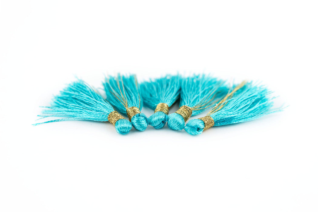 Look no further! These genuine silk tassels have been individually handmade by an expert of the craft. They are crafted from authentic Indian silk which is highly refined and world renown. Specially made for The Bead Chest, each high quality tassel is wrapped with a gold thread. Available in 20+ fun colors and 4 different sizes, you’ll find in our collection a tassel for almost every need. Each purchase of these blue color tassels will ship as a pack of five pieces. Individual tassels measure approximately 3 centimeters (1.2 inches) in length. May be used in jewelry designs, home decor, and art projects galore. Mix and match your favorite styles today!