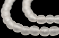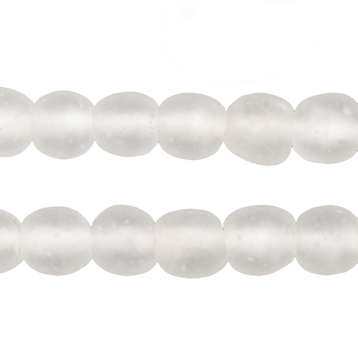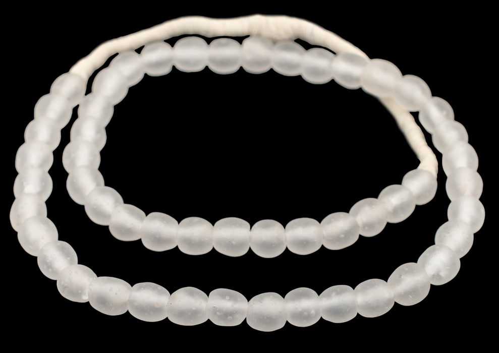 These great beads are made by the Krobo People of Ghana, Africa. Powder glass beads are made by crushing glass to a fine powder and heating it so that the particles fuse together. The glass is then poured into clay molds, with a cassava leaf stem used to make the hole. They are baked in an oven and the glass fuses and the cassava stem burns up. This technique has been used in Africa for centuries.