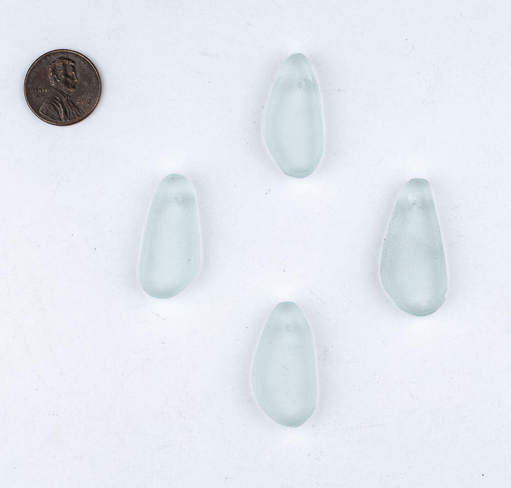 Clear Teardrop Sea Glass Pendants (Set of 4)