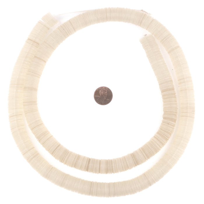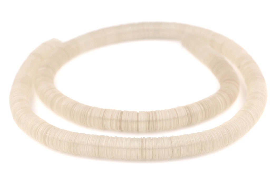 Take a look at this beautiful strand of African vinyl beads in a nice orange color. Beads such as these are found in Ghana and Nigeria where they are sometimes worn as waist beads. Older versions of vinyl beads were said to be made from recycled phonograph records. This strand measures approximately 36" long with individual beads measuring 0.28 x 14mm. These beads are light and fun to wear and also versatile for jewelry designs. Each strand is sold individually.