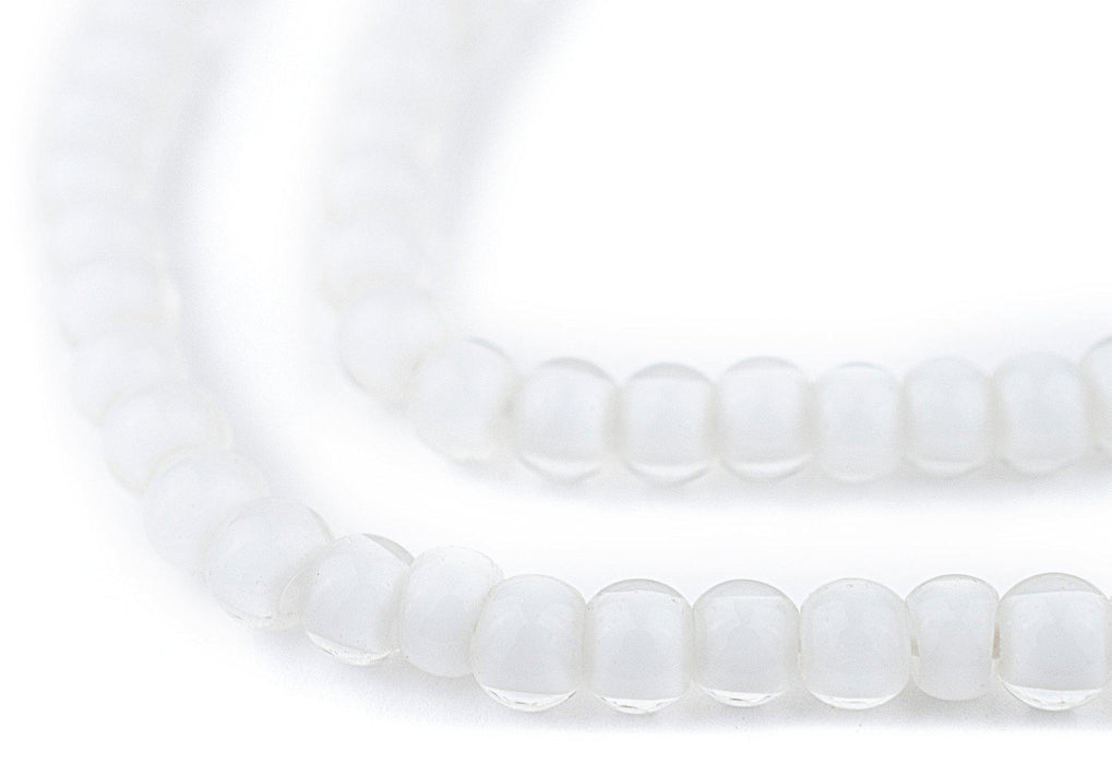 Checkout this beautiful strand of white heart beads! White hearts derive their name from the inner core of opaque white glass that is coated with a layer of translucent colored glass. This process produces beads with a unique character as light passes through the bead. White heart beads were originally of French or Czech provenance and traded in Africa. This strand measures approximately 26" with individual beads measuring about 5 x 6mm. Available in a variety of sizes, shapes, and colors!