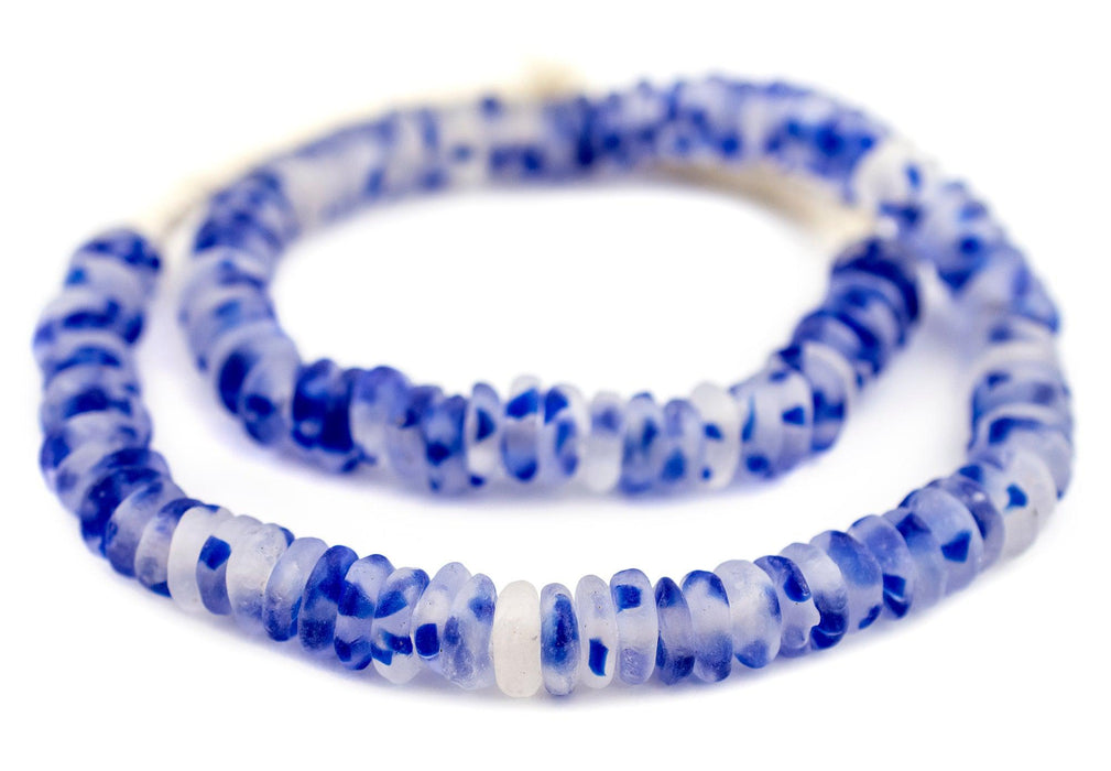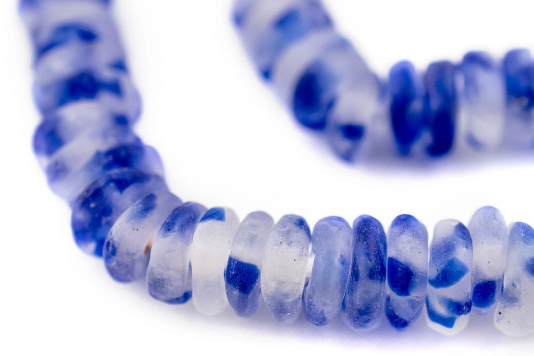 Cobalt Blue Mist Rondelle Recycled Glass Beads