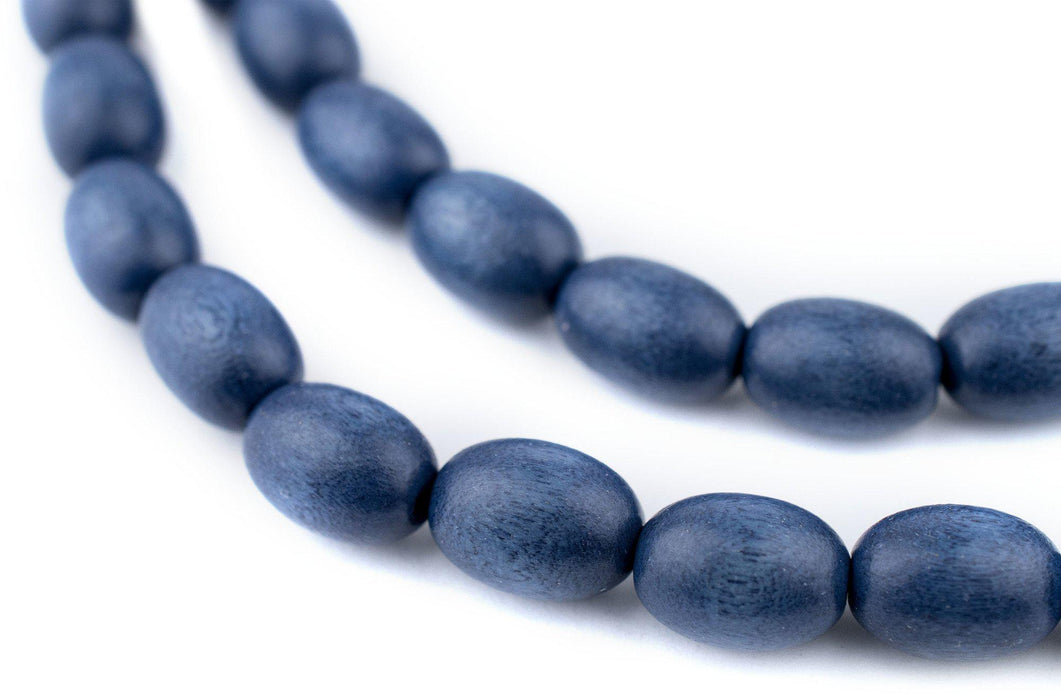Cobalt Blue Oval Natural Wood Beads (15x10mm)
