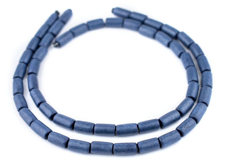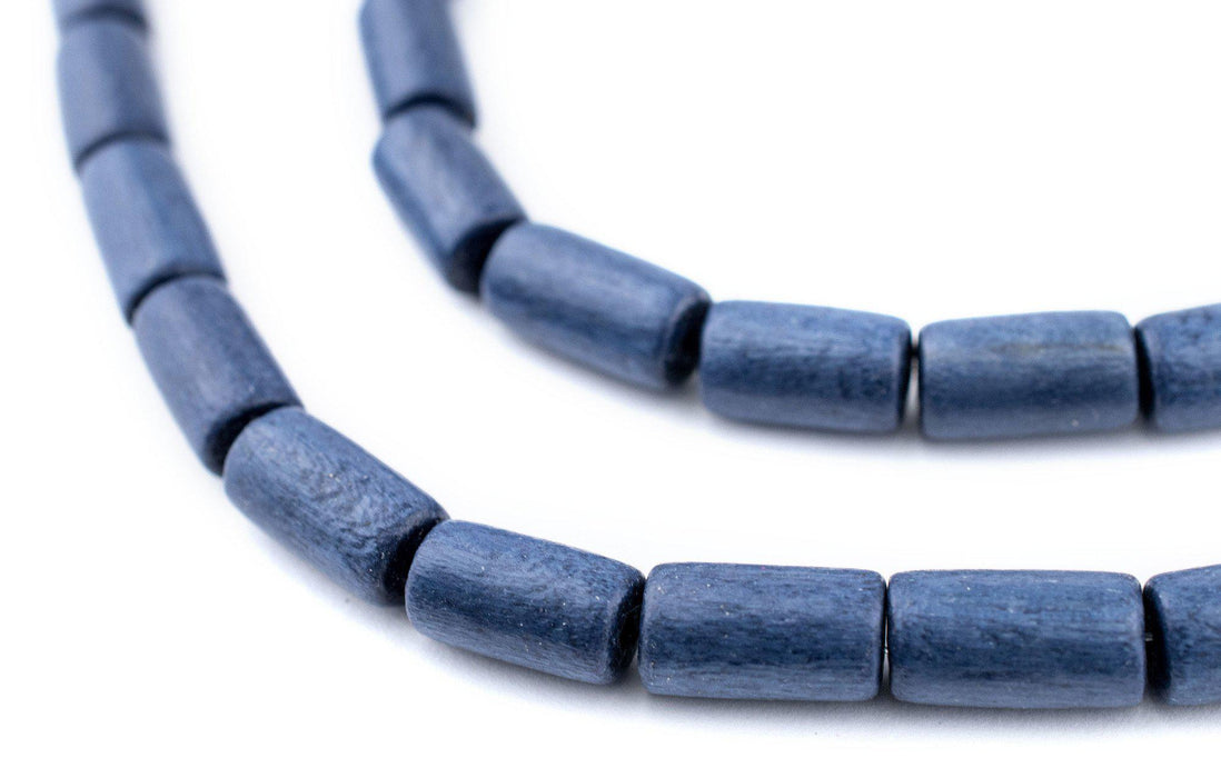 Cobalt Blue Tube Natural Wood Beads (15x8mm)
