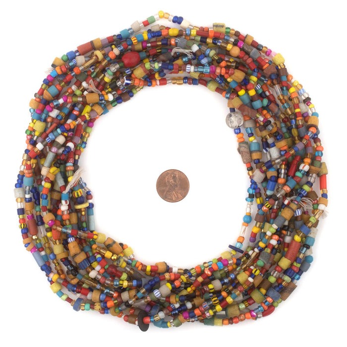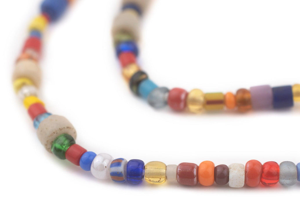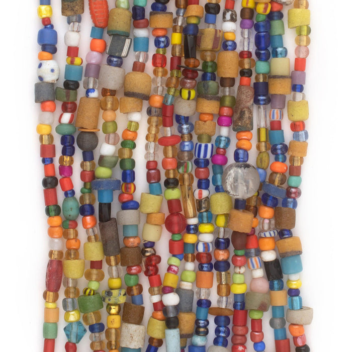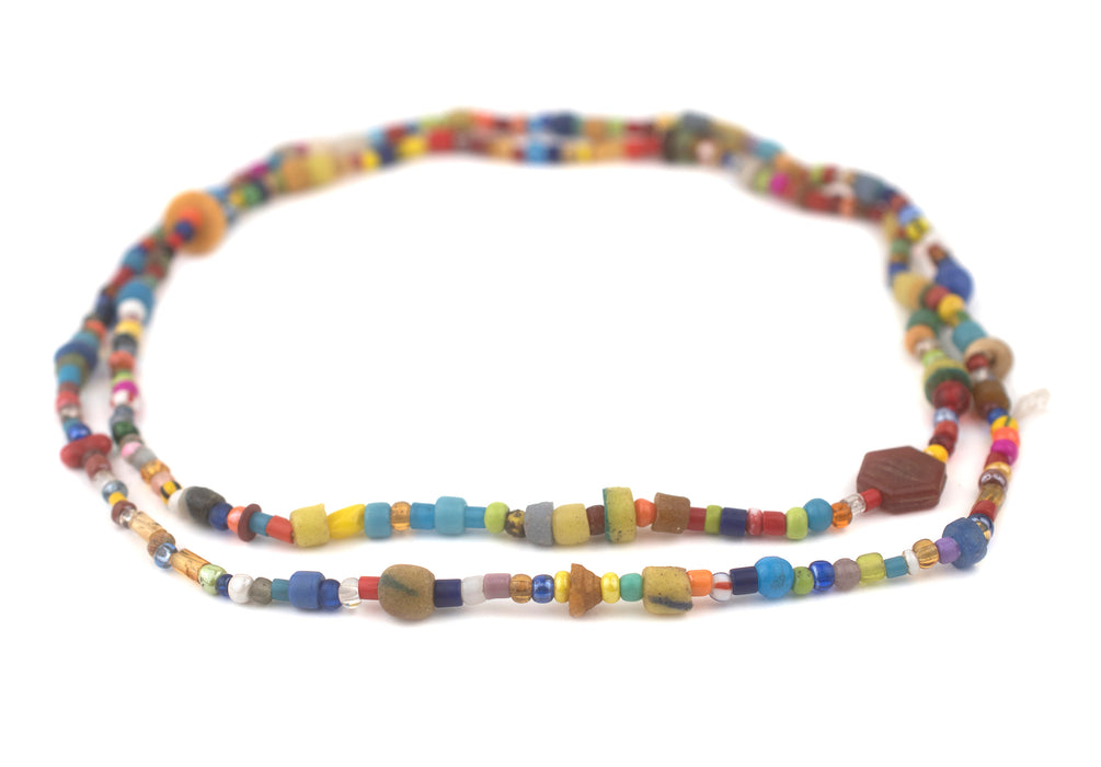 Admire this colorful strand of glass Christmas beads. Also sometimes identified as Czechovally beads, strands of mixed beads such as these may derive their name from Czechoslovakia which was a major site of glass production during the 19th and 20th centuries. Each extra long strand measures up 38" long and can be worn alone or as a collection of several strands. These beads are priced to sell!