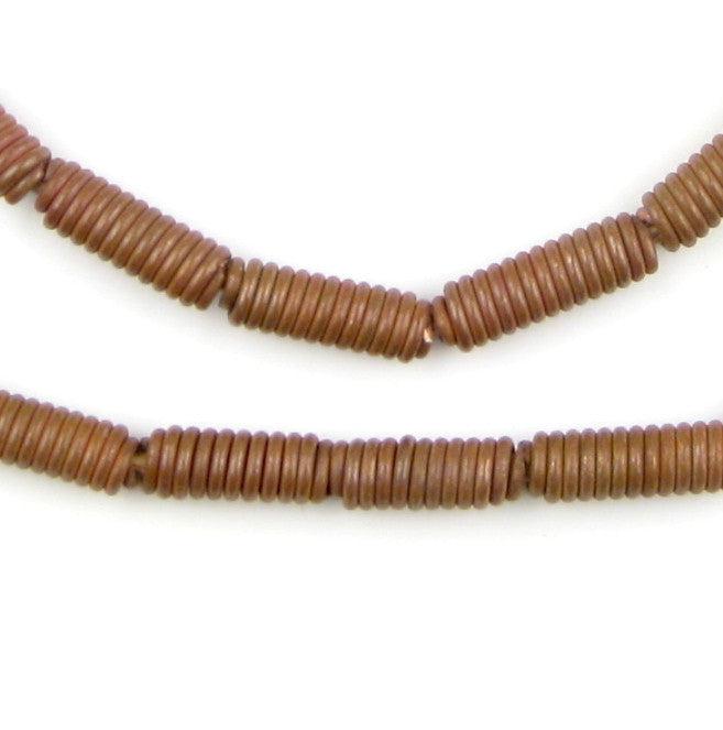 Beautiful strand of copper coil beads. Each bead measures approximately 14-20mm long by 6mm in diameter. These beads are sturdy and have a nice solid feel. Unique design!