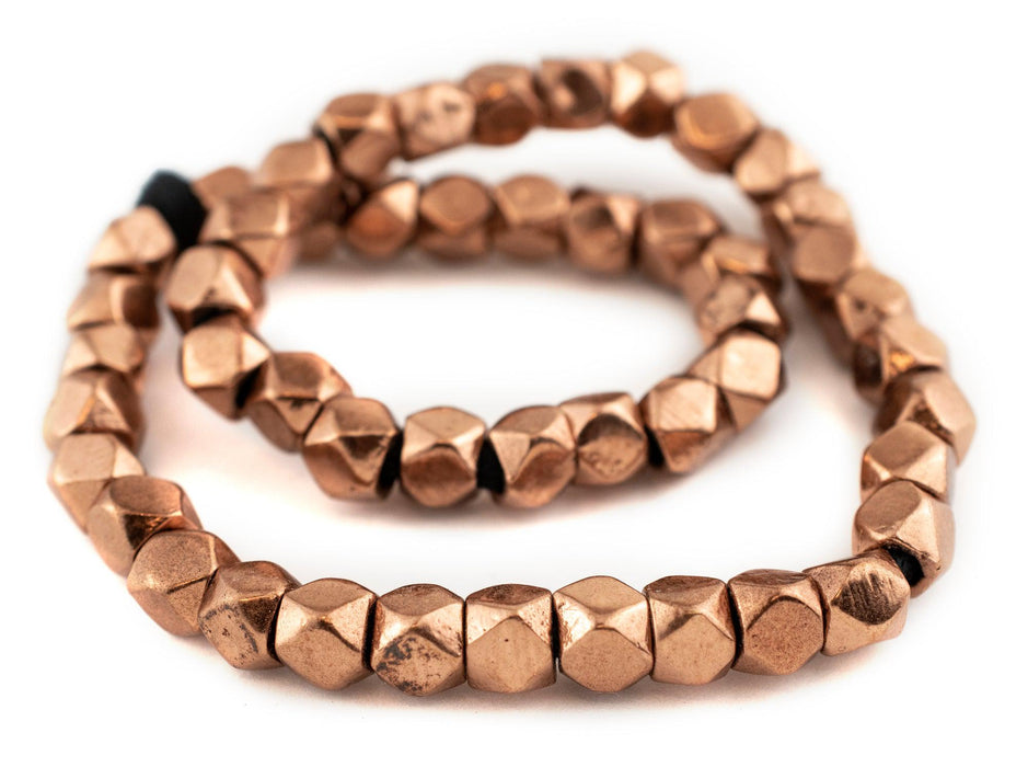 Take a look at this great strand of beads fashioned in a faceted shape. These beads are a larger size of our popular diamond cut beads, and include a large hole. Each strand is 16" inches long with approximately 49 beads measuring 7-8 x 9-10mm across. These great beads are highly versatile and may be used as spacers or accents in your unique designs. A great addition to your beading toolkit! This artisan product is made using premium copper electroplating over brass to make these copper finish customer favorites.