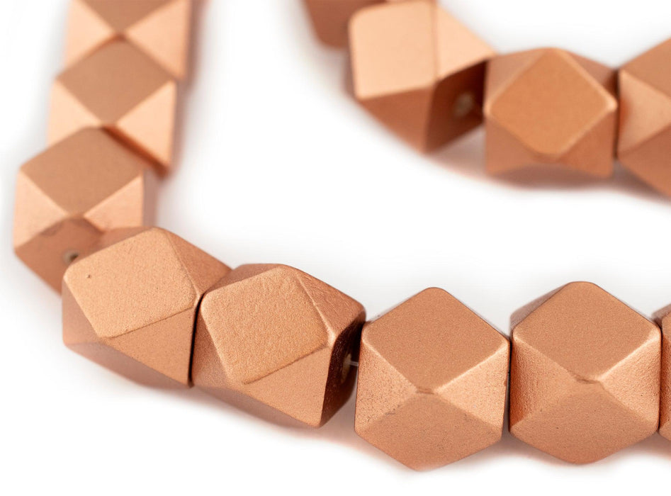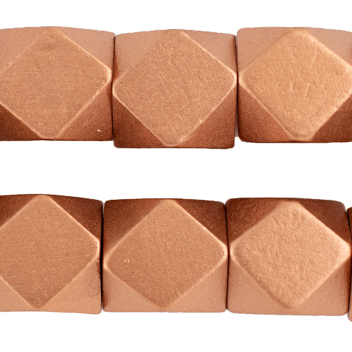 Copper Diamond Cut Natural Wood Beads (20mm)