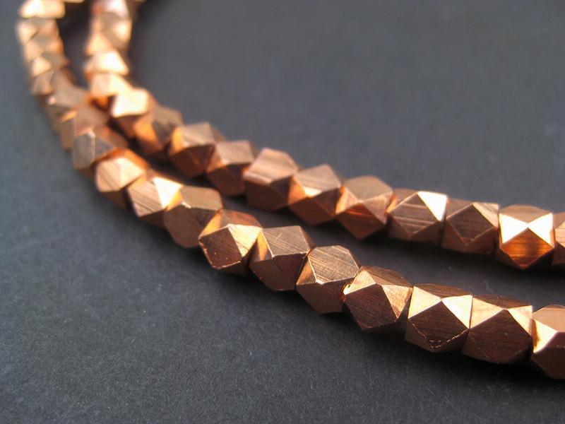 Beautiful strand of faceted copper beads. These beads have been fashioned to resemble a diamond cut. They will add a glamorous touch to your beaded jewelry! Individual beads measure 5mm across.