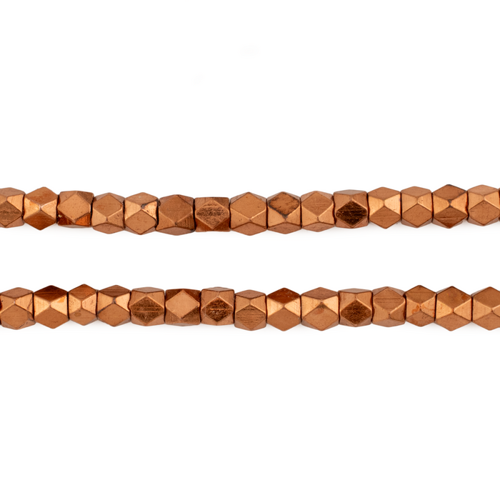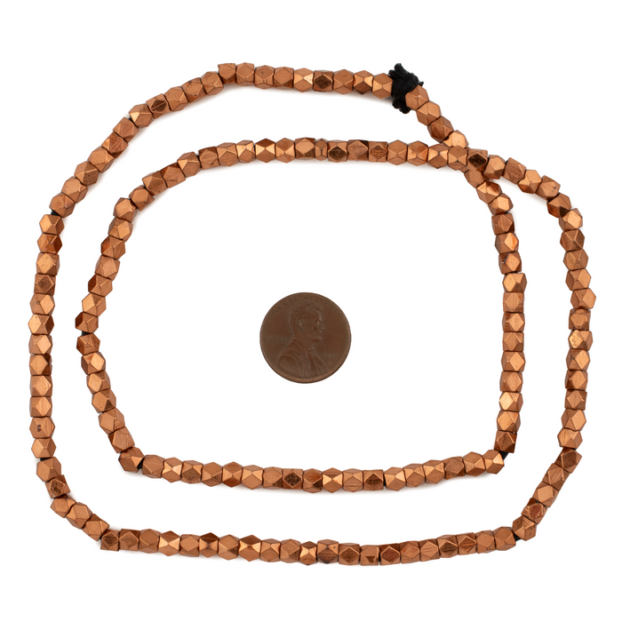 Copper Faceted Diamond Cut Beads (4mm, Large Hole)