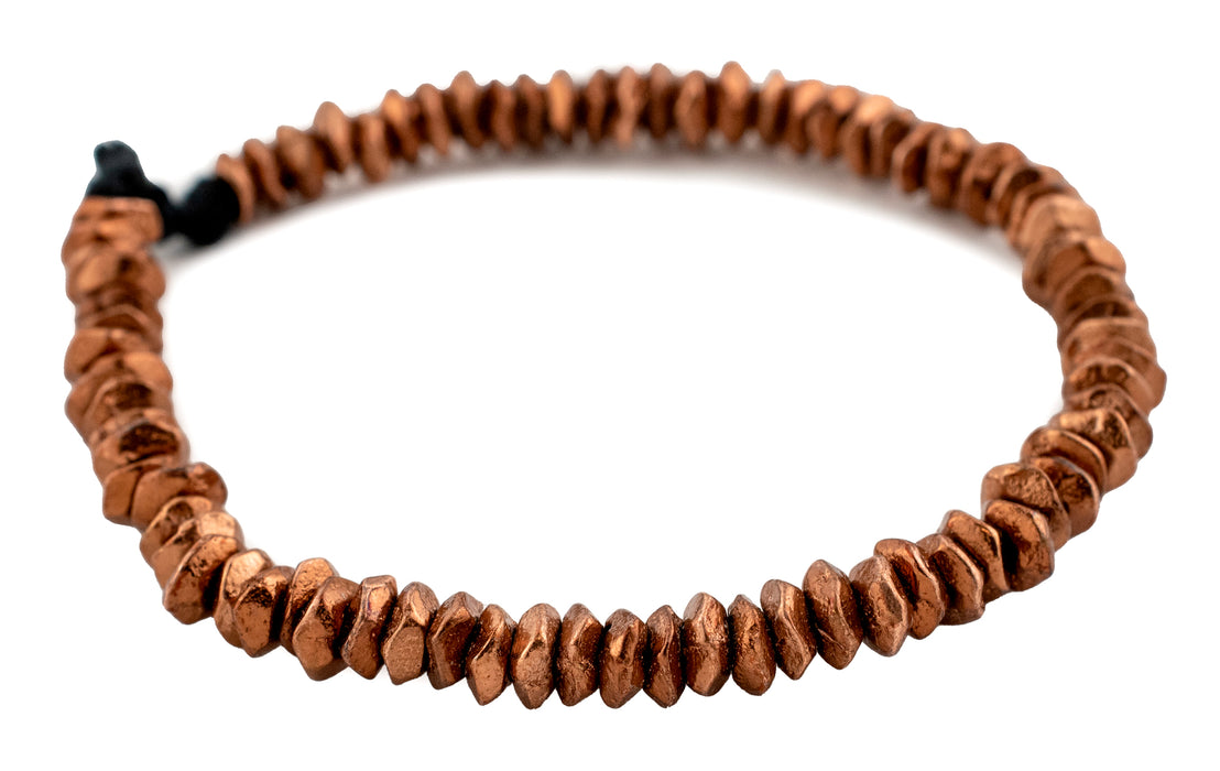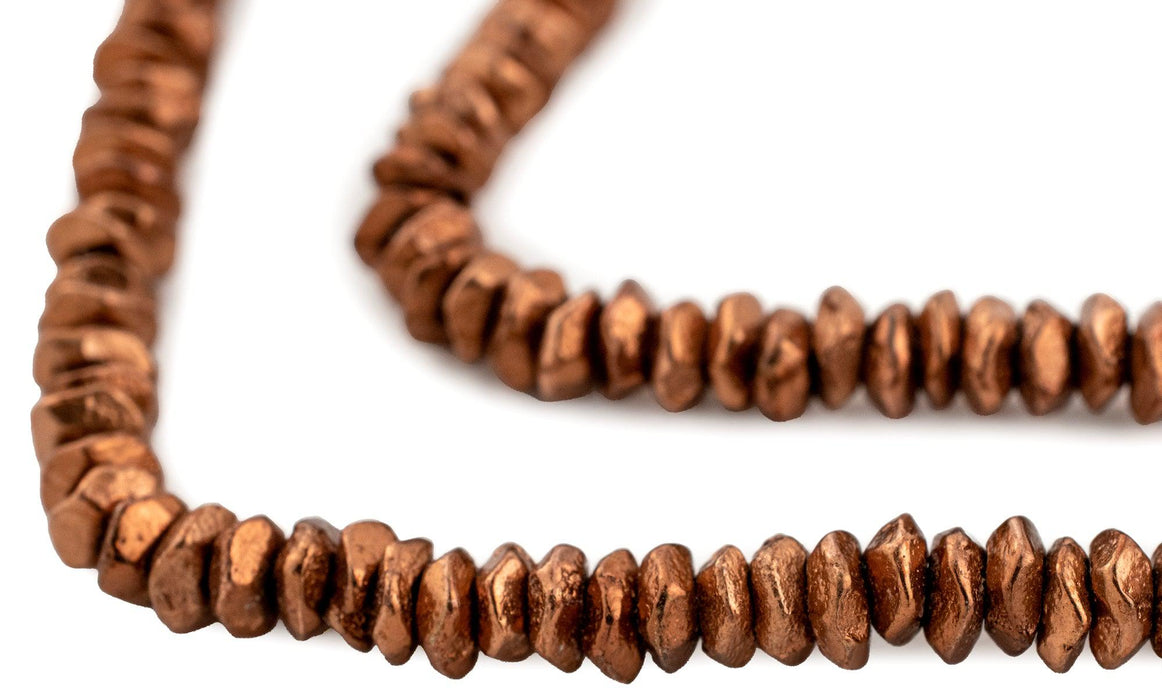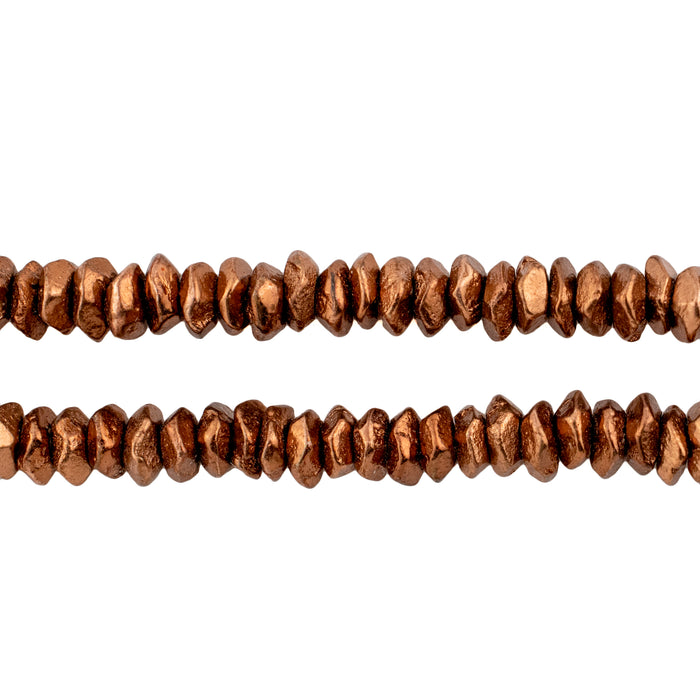 Nicely finished copper ring beads. Faceted edges give these beads a unique touch. One strand measures about 8.5" in length with 80 beads measuring 3mm wide by 7mm in diameter. This artisan product is made using premium copper electroplating over brass to make this copper finish a customer favorite. Try a strand today!