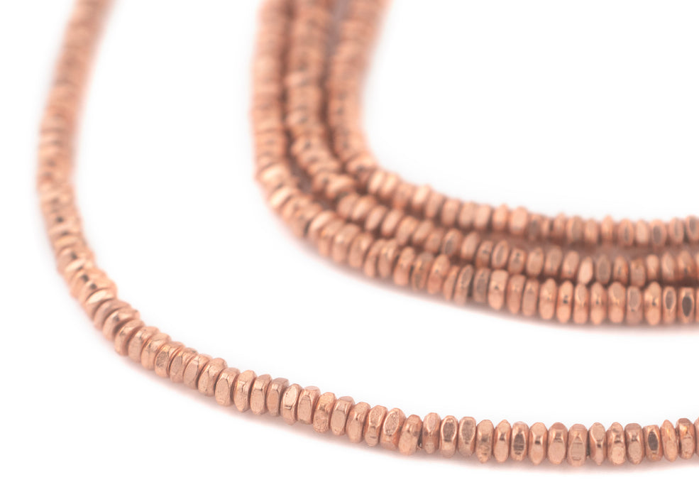 Take a look at these stunning copper square heishi beads. These beads make for a great spacer in jewelry designs! Each artisan bead strand measures out at about 24" in length. Each individual bead approximately measures in at 1 x 3mm and roughly has a 1mm bead stringing hole. Multiple strands pictured. Each strand sold individually. With so many different ways to design with these beads, working with these beads is a no-brainer. This artisan product is made using premium copper electroplating over brass to make these copper finish customer favorites. Get your strand today!