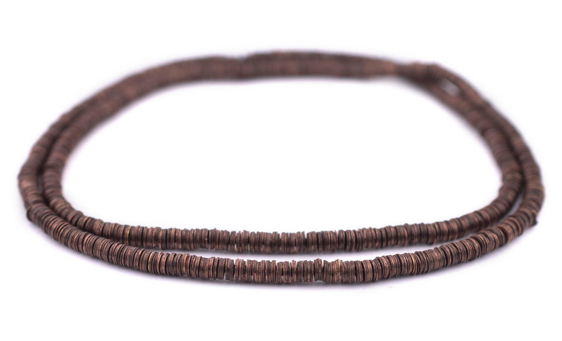 Take a moment to admire these chic copper disk heishi beads. The flat shape of these heishi beads makes them a fun and handy bead to use when creating DIY necklaces and bracelets. Each strand measures about 24" in length. Beads measure approximately 0.5 x 4mm with a roughly 1mm hole. Each strand is sold separately. Grab a strand or two for your beading toolkit today! This artisan product is made using premium copper electroplating over brass to make these copper finish customer favorites.