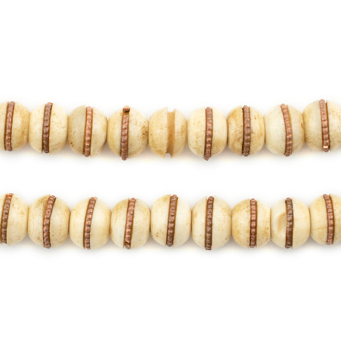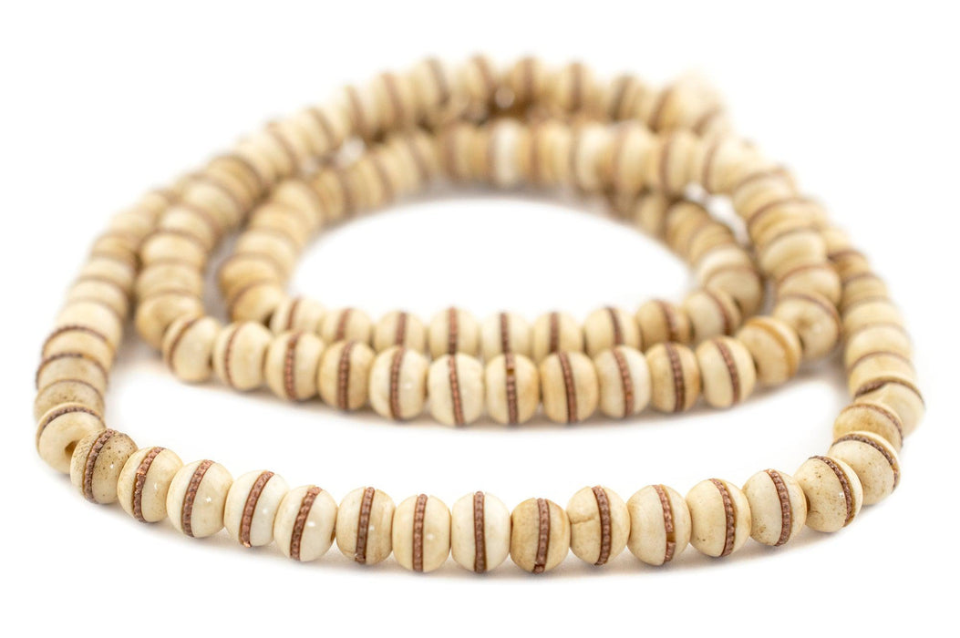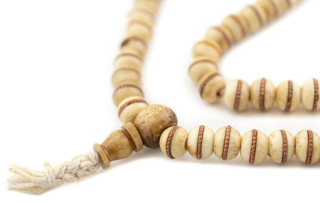 Copper-Inlaid Beige Bone Mala Beads (8mm)