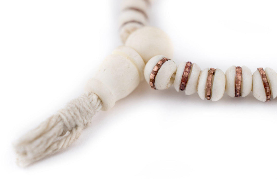 Copper-Inlaid White Bone Mala Beads (6mm)