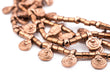 Admire this beautiful double stranded necklace of miniature Baule-style charms. These copper charm beads are great for ethnic jewelry or can be worn as is. Each necklace includes two strands totaling approximately 100 charms, PLUS additional copper spacer beads. Strands measure approximately 25-30" in length, with charms measuring approximately 10 x 7mm. Great value. This artisan product is made using premium copper electroplating over brass to make these copper finish customer favorites.
