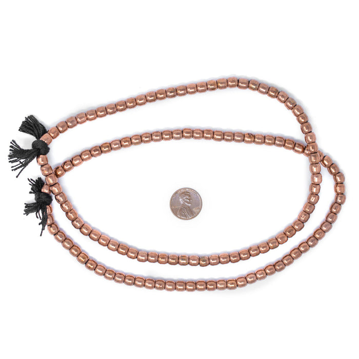 Take a look at these reflective strands of copper miniature Padre Beads. Each strand is about 16" in length. Each individually handcrafted bead is approximately 6 x 6.5mm with a roughly 3-4mm hole. These artisan beads are super versatile and can easily be added to almost any custom jewelry design. Multiple strands pictured. Each strand is sold individually. Take home a strand for yourself today! This artisan product is made using premium copper electroplating over brass to make these copper finish customer favorites.
