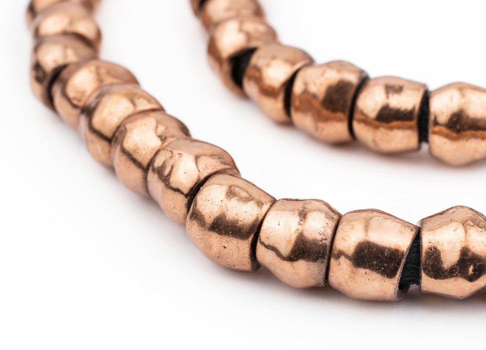 Take a look at this great strand of copper Mursi rings. Fashioned in a traditional tribal design, each strand is 16" inches long with approximately 45 beads measuring 8.5 x 10-11mm. These high quality beads are extremely versatile due to their large holes measuring 6-7mm. Available in silver, brass, and copper colors. A great addition to your beading toolkit! This artisan product is made using premium copper electroplating over brass to make these copper finish customer favorites.