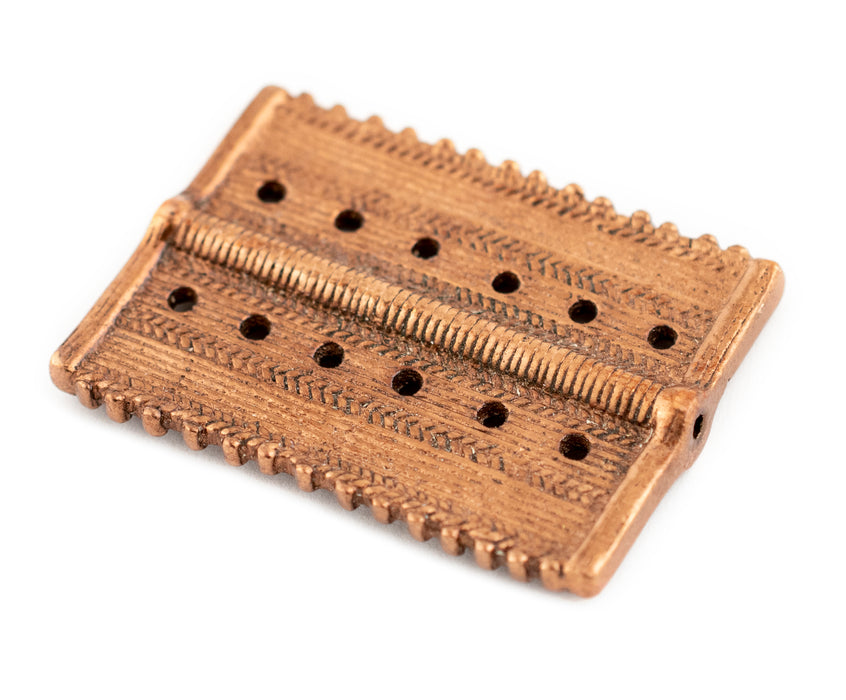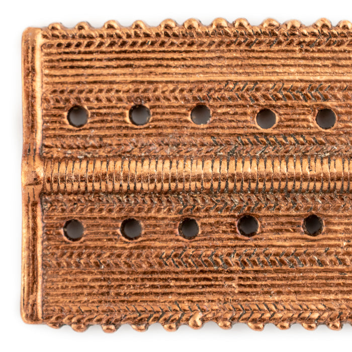 This beautiful copper bead is hand casted in a traditional design from the Ivory Coast. Increasingly difficult to find, Baule (also known as Baoule) tribal beads are some of the most unique casted beads from West Africa. You will receive a bead measuring approximately 54 x 41mm with a hole size of approximately 2mm. You will receive one pendant bead per order. We've partnered with a special workshop to bring this unique treasure to you. Pay close attention to the detail and note the high quality finish of this special bead. Shade of copper may vary slightly from photo. This artisan product is made using premium copper electroplating over brass to make these copper finish customer favorites. Grab one for yourself today.