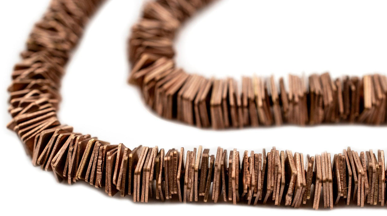 These unusual square-shaped heishi beads have an organic and weathered texture. May be used as spacers or to add some interesting texture to your designs. Individual beads are less than 1mm thick and approximately 5mm across. The strand length is 16". This artisan product is made using premium copper electroplating over brass to make this copper finish a customer favorite.