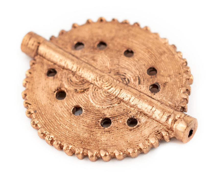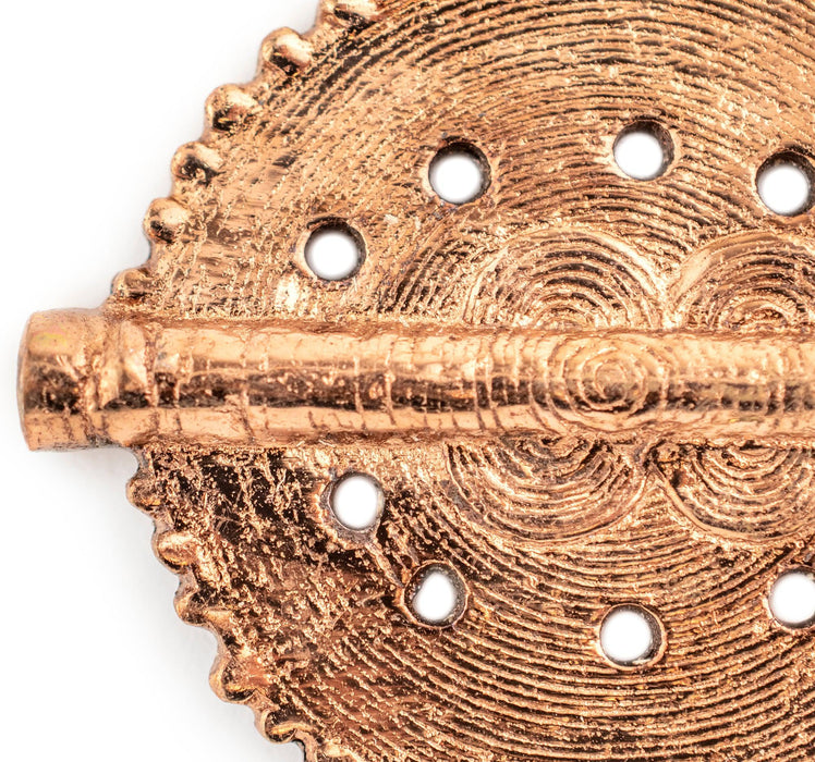This beautiful copper pendant bead is hand casted in a traditional design from the Ivory Coast. Increasingly difficult to find, Baule (also known as Baoule) tribal beads are some of the most unique casted beads from West Africa. You will receive a bead measuring approximately 55 x 45mm with a hole size of approximately 2mm. You will receive one pendant bead per order. We've partnered with a special workshop to bring this unique treasure to you. Pay close attention to the detail and note the high quality finish of this special bead. Shade of copper may vary slightly from photo. This artisan product is made using premium copper electroplating over brass to make these copper finish customer favorites. Grab one for yourself today.