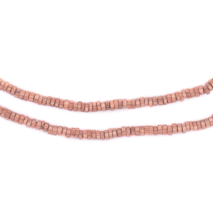 Beautiful strand of high quality, ethnic metal beads measuring 24" in length. Individual beads measure 1 x 3mm in size, with holes measuring approximately 1mm. Each strand includes approximately 270 beads. These highly versatile beads make great spacers, or may be used to accent your unique beaded designs. This artisan product is made using premium copper electroplating over brass to make these copper finish customer favorites.