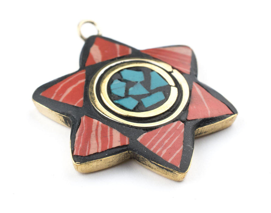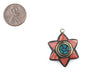 This charming Star of David pendant was made by skilled artisans in the Nepal countryside. Each pendant is crafted by inlaying a brass backing with different kinds of stone, sometimes including turquoise, coral, lapis, and others. This is a very unique find in the world of judaica. Get yours while you can!