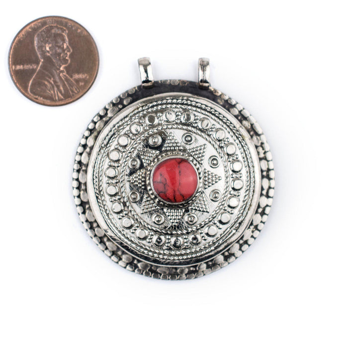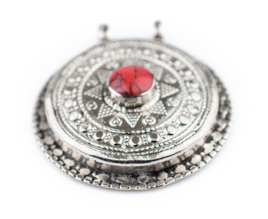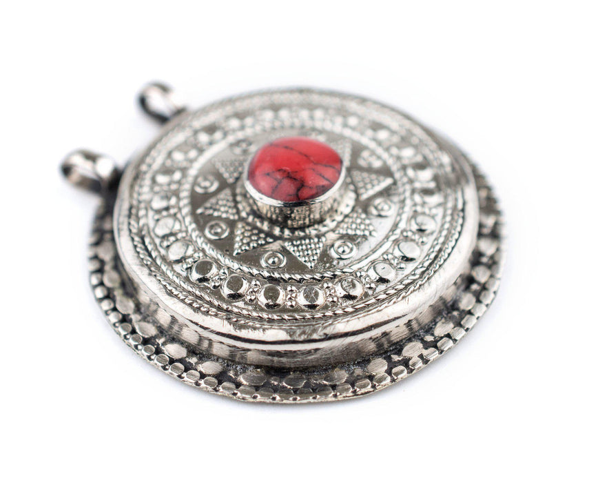Coral-Inlaid Afghan Tribal Pendant (42x46mm)