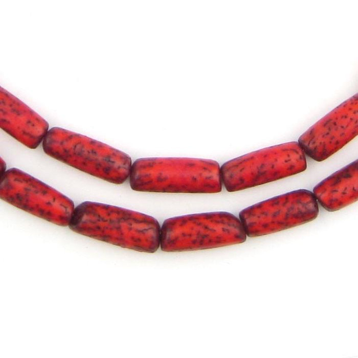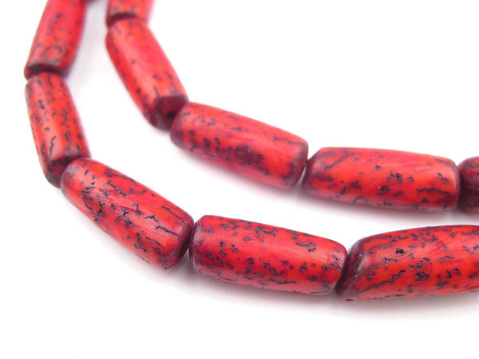 These stunning red beads are made from natural wood, and are meant to resemble coral. The slight variations in colors and shape of the beads will make them a fun addition to your beading project. Look carefully and you will see that each bead is unique. Individual beads measure 15-19 x 6-7mm diameter with approximately 35 beads on each 27" strand. Use them as spacers or accent beads. Take note that the length of these strands are longer than usual, and finished with a nice black cord. The rustic character of these beads is sure to add an authentic touch to your jewelry designs!