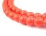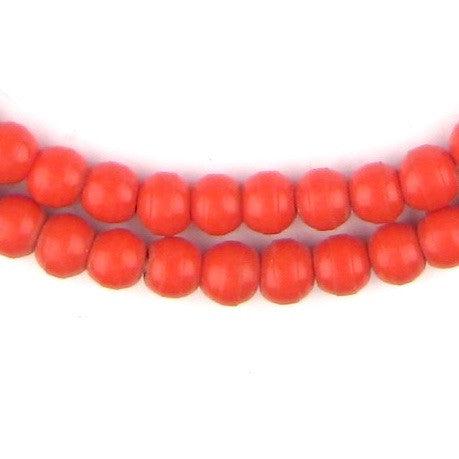 These round coral red padre beads are found in Nigeria, West Africa. Vintage beads such as these have been traded in African since the late 1800 early 1900's. Each bead measures 6-7mm in diameter with approximately 75 beads on each strand.