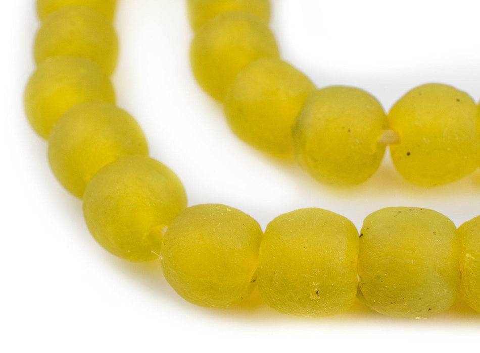 Recycled glass beads are a type of indigenously produced African bead from Ghana West Africa. These beautiful blue color recycled beads are made using an old method that has been used for centuries. The glass itself is derived from a variety of recycled sources including old beverage and medicine bottles. The procedure for making the beads consists of a number of steps whereby powdered glass is poured into molds of clay and baked in a specialized oven. These beads are produced in large part by the Krobo tribe and through recycling glass are environmentally friendly.