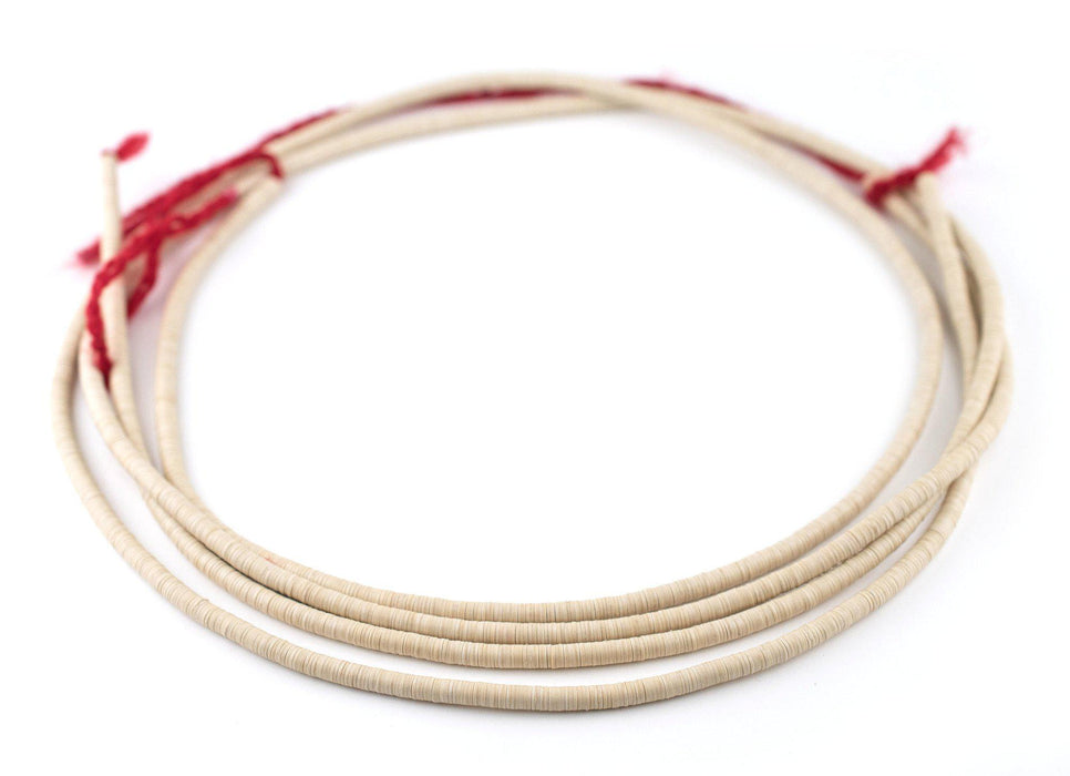 Take a look at this beautiful strand of red African vinyl beads. Beads such as these are found in Ghana and Nigeria where they are sometimes worn as waist beads. Older versions of vinyl beads were said to be made from recycled phonograph records. This strand measures approximately 33" with individual beads measuring approximately 0.28 x 4mm. These beads are light, fun to wear and also versatile for jewelry designs. Each strand is sold individually.